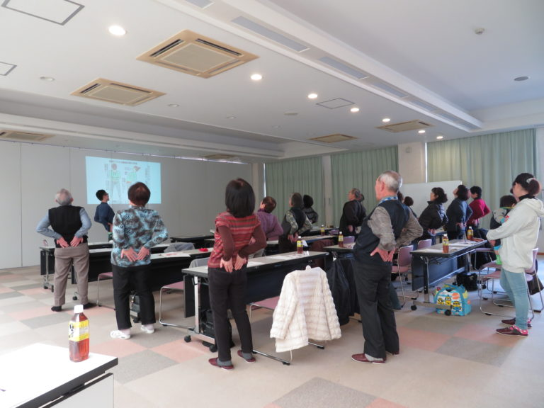 1月17日(木)は、勝央町社会福祉協議会が窓口となって行っている有償ボランティア事業「ファミリー・サポート・センター」の提供会員さんの研修会の講師を務めました。20名のご参加で、腰痛予防と認知症の方への接し方のポイントをお話しました。「ファミリー・サポート・センター」では、必要に応じて簡単な家事等の支援を行います。中には掃除や買い物の支援など、力が必要なものもあり、体を上手に使って腰痛予防をする方法をご紹介しました。ボランティアとして参加されている住民の方はこれまで介護の経験のない方も多く、「体の使い方について良く分かった」との感想をいただきました。