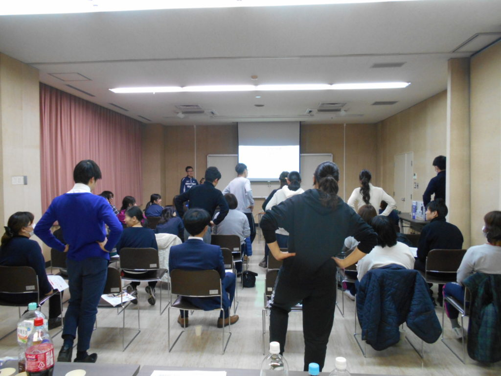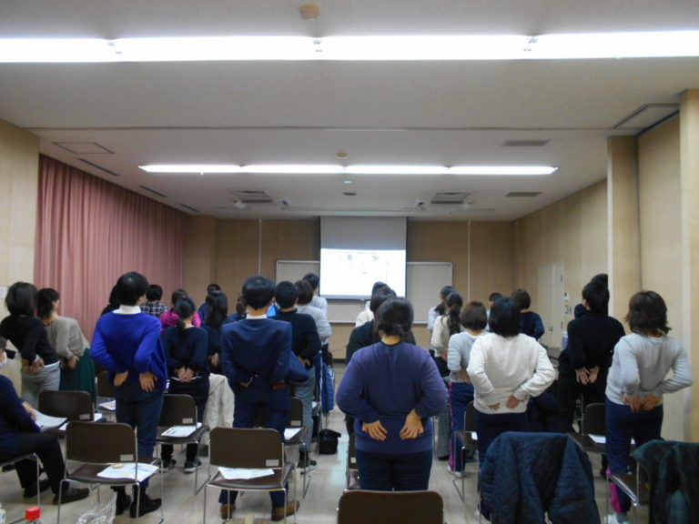 3月20日、勝央町互助会の会員様を対象に腰痛予防講座を開催しました。年度末の業務時間後のお疲れのところ、勝央町役場や町立の保育園にお勤めの職員さんが40名もご参加くださいました。